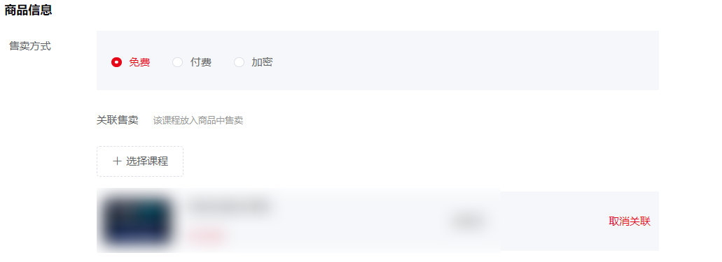 关联售卖:添加要在直播间进行售卖的课程,直播中途上架直接编辑这里保存即可
